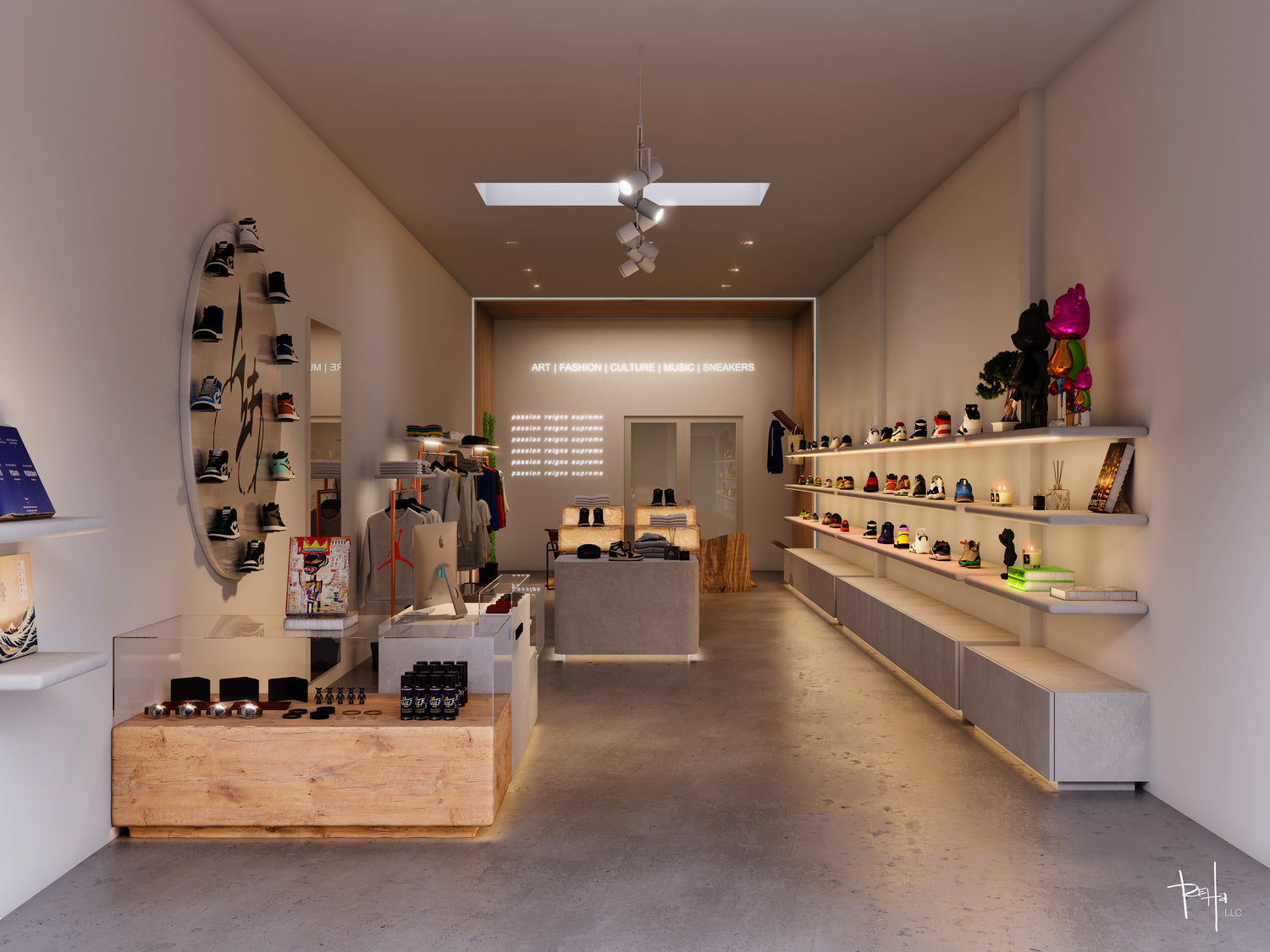 Not only will the selection of clothing and sneakers fulfill a demand for established as well as new fashions, our selected artwork will influence, inspire and provoke thought.