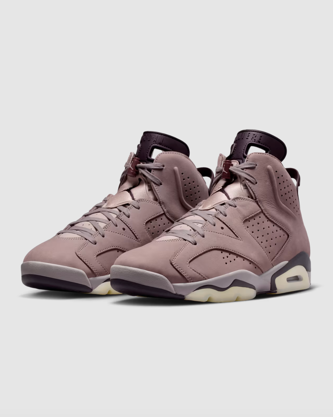 The AJ6 is no stranger to the feet of champions. In 1991, the shoe ushered Michael Jordan’s dynasty with the Chicago Bulls and has become a cornerstone of culture since. For the next chapter in its legacy, James Whitner's A Ma Maniére redefines the AJ6 through the luxury of restraint. The latest iteration features a premium upper, complemented by a wash of “Smoky Mauve,” along with classic branding at the tongue and a hit of burgundy at the lace toggle. A milky translucent outsole balances the look, while the quilted interior adds a sumptuous feel. Champions don’t need to be loud to stand out.