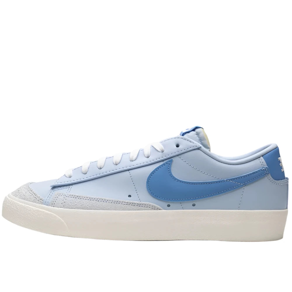 Shades of blue dominate this new colorway of the Nike Blazer Low. This summertime color option of the Nike Blazer Mid starts off with a light blue smooth leather construction all over the upper with a brighter blue then placed on the Swooshes, tongue tags, insoles, and heel tabs. Adding another layer of blue we have suede overlays on the toe. Finishing details include white laces and Sail rubber soles down below.