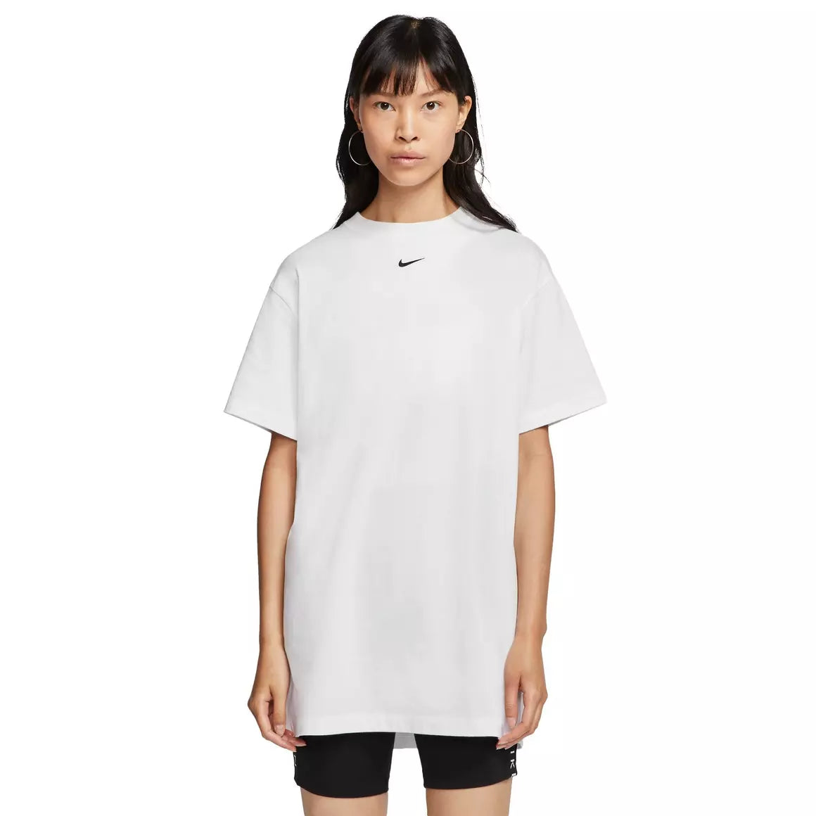 Black women's short essential dress with logo on the front. Loose fit for a wide and oversized cut.