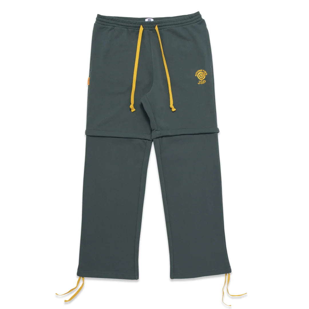 Pants are constructed of 470 Gram French Terry. They feature an adjustable drawstring waist, convertible to become shorts, and they also feature an open leg with drawstrings to rock loose or cinched!