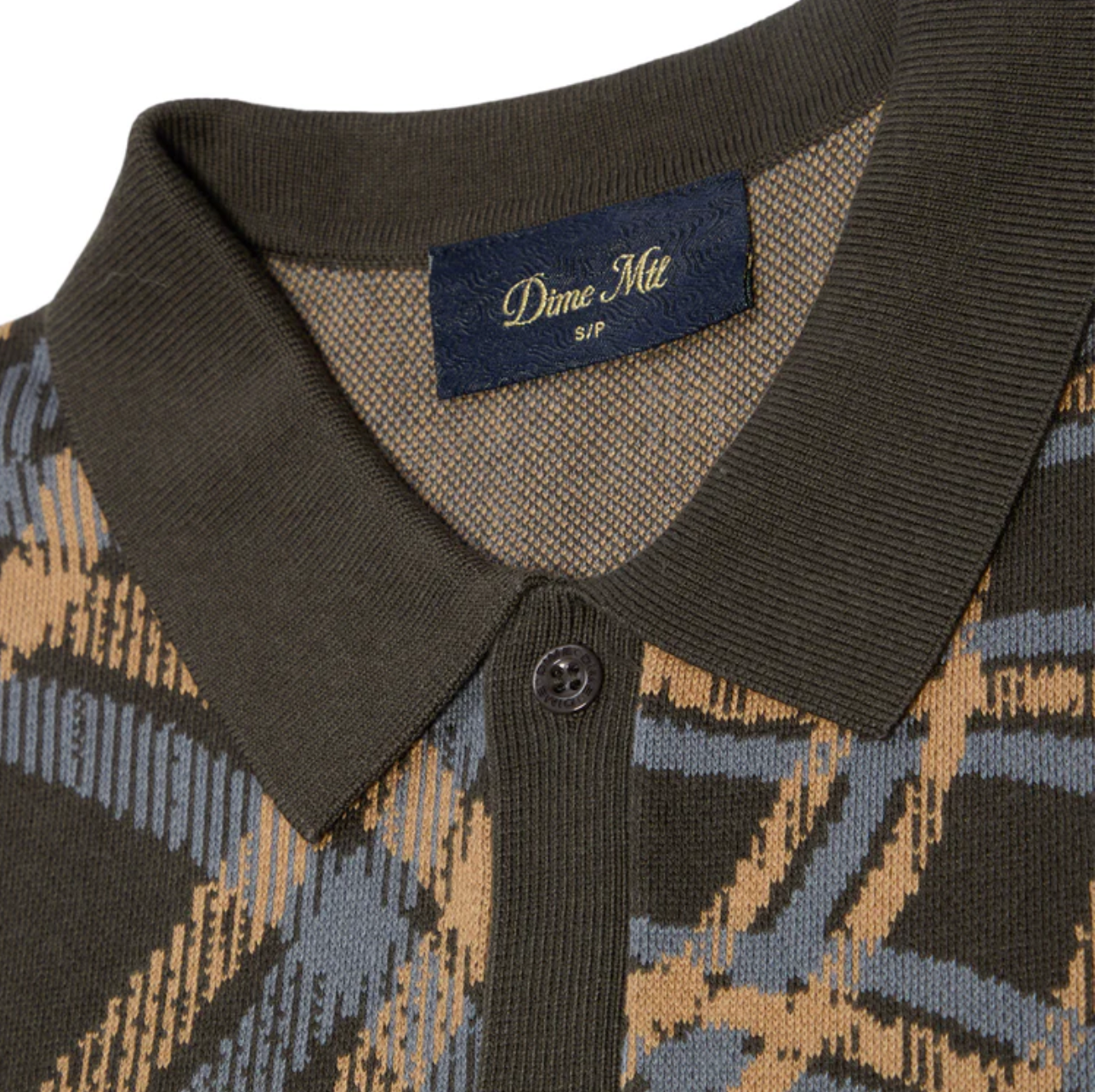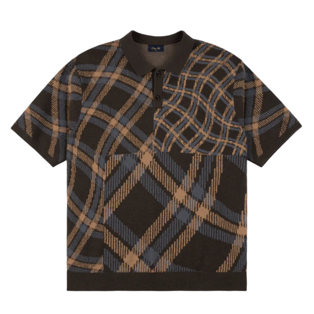 Continuing to push its design vision forward, this Dime Polo is no different. Crafted with a custom wavy plaid block print, an embroidered logo on the chest adds a familiar finishing touch. 50% Lyocell, 50% Cotton, Classic Collar, Button Placket, Ribbed Trims, Dime. Allover plaid block print. Custom branded buttons along center front placket. Cursive embroidery at left chest. Ribbing at collar/bottom/sleeve hem