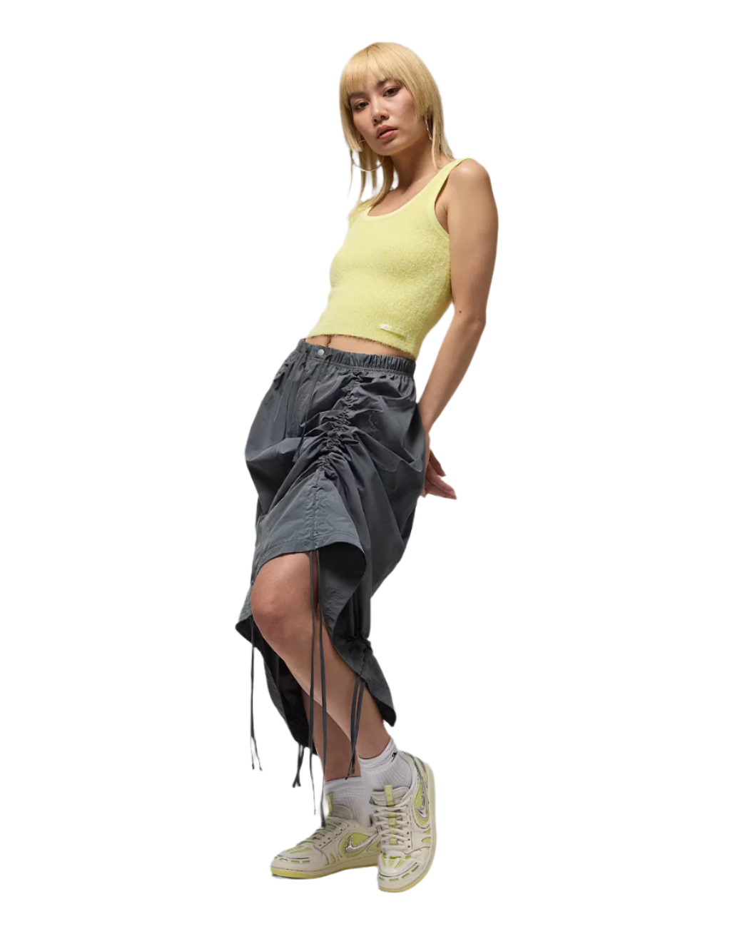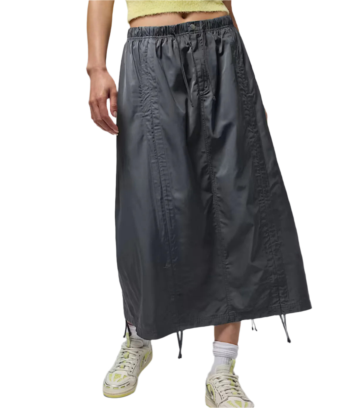 Lightweight and roomy, this mid-rise skirt brings you versatile style. Smooth woven fabric gives it a sleek look, while drawcords in the seams let you cinch up the hem. How will you wear it?