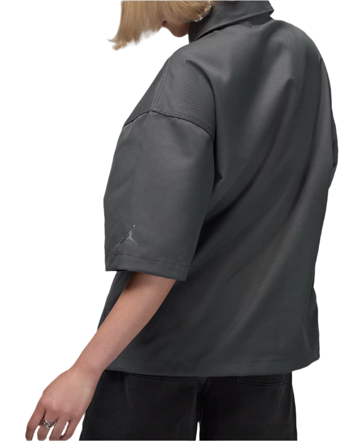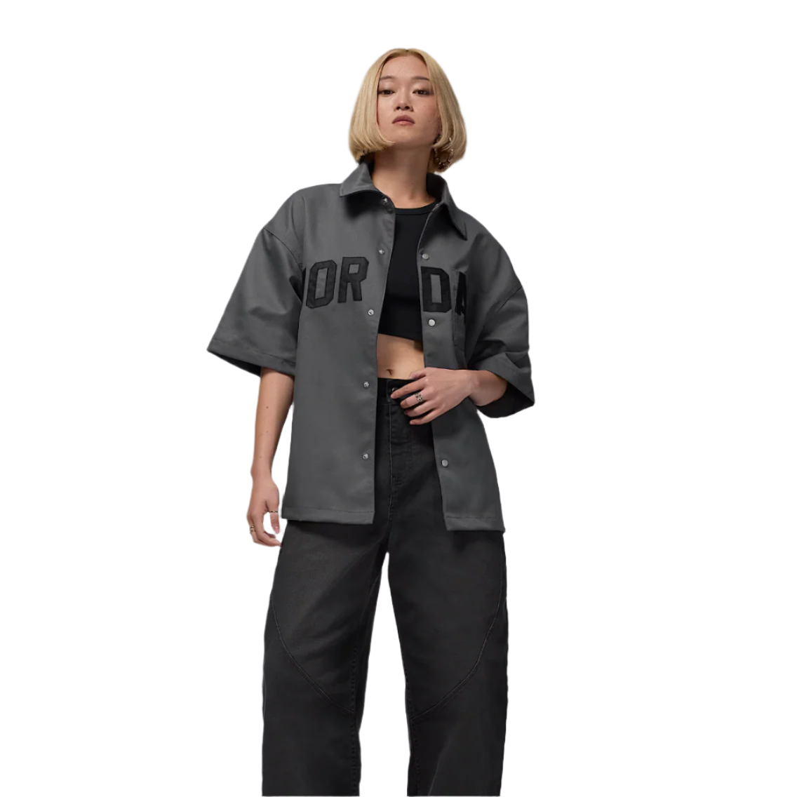 Sturdy, structured twill fabric and a loose fit keep this snap-front top ready for solo wear or a layered look. See how the "Jordan" patch lettering layers over the shirt's opening and chest pocket? It's proof we obsessed every detail.