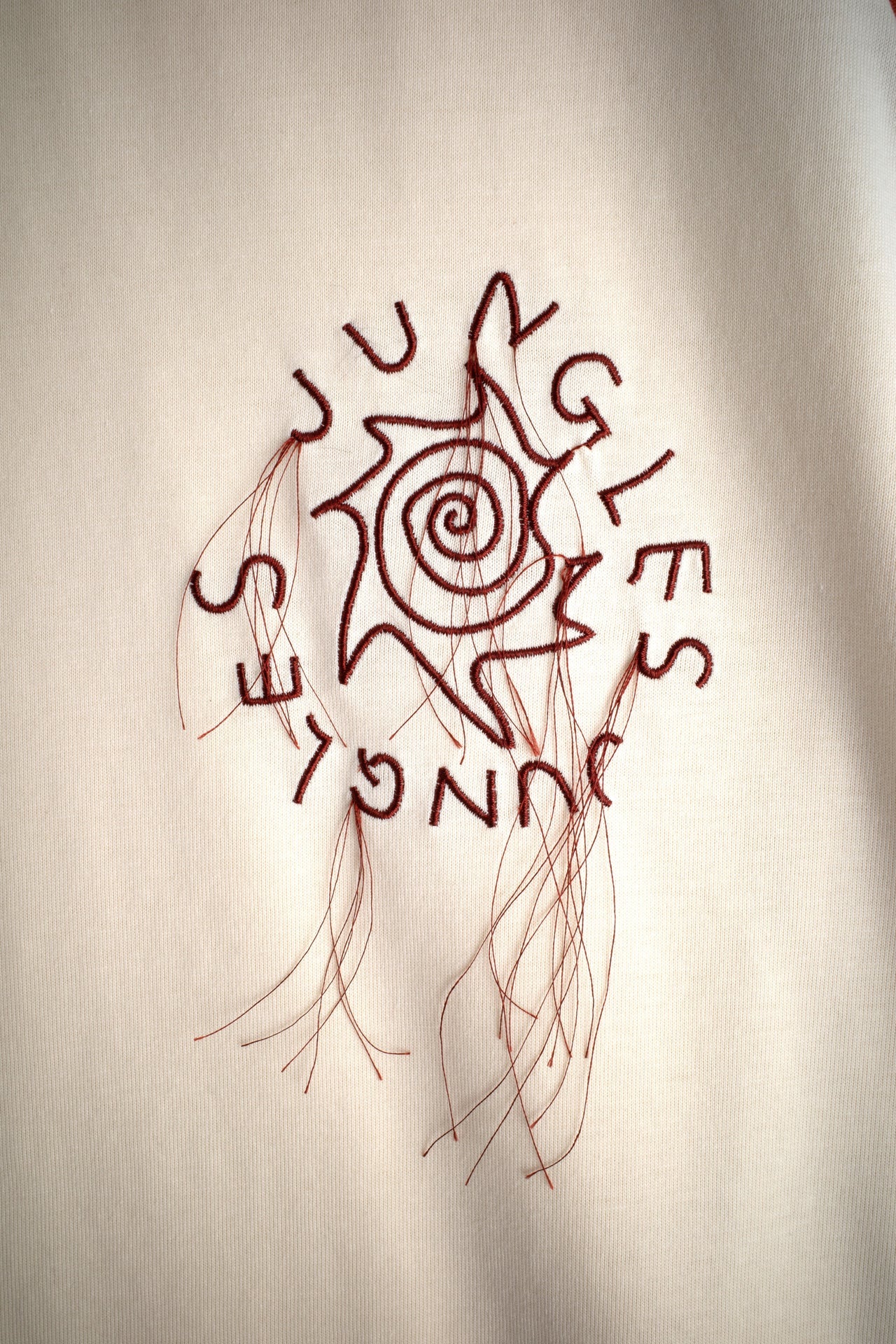 Boxy raglan style t-shirt, with layered raw edge detail.