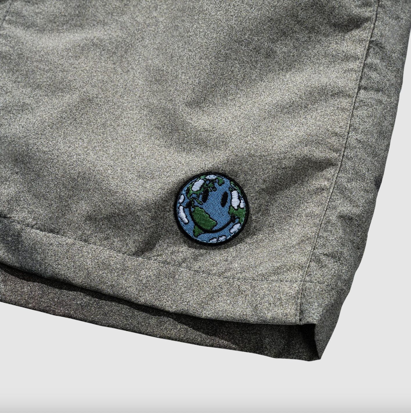 Got the whole world on my shorts. The classic tech shorts feature an embroidered smiley detail.