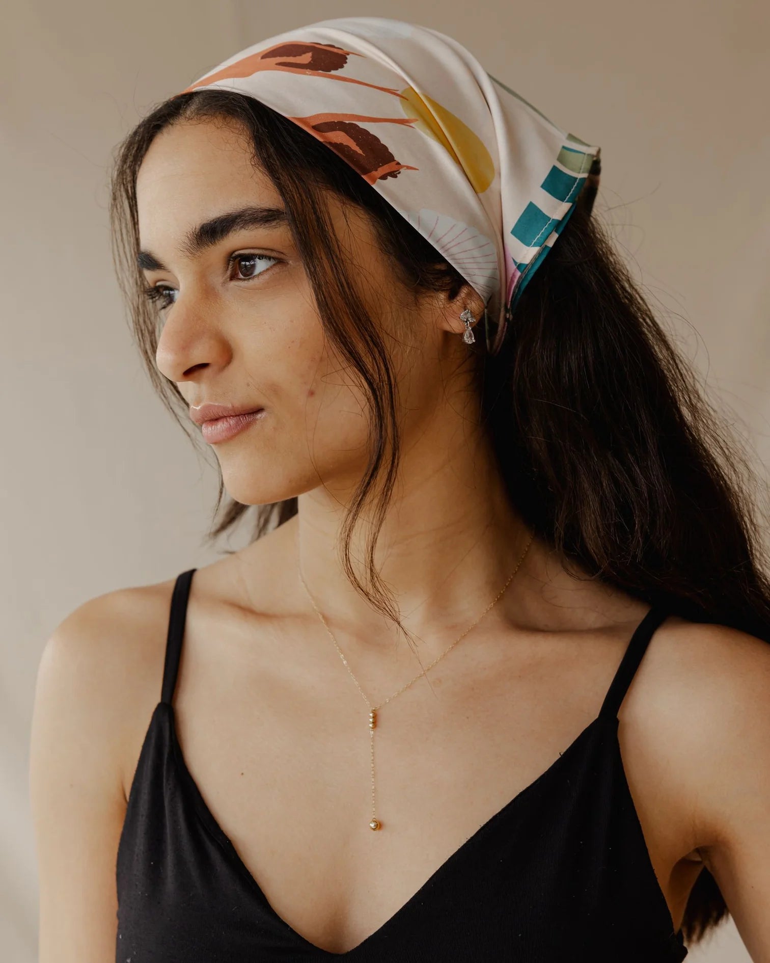 Lightweight, smooth, and easy to wear—this satin printed scarf adds a little something extra to any look. Style it your way: as a headscarf, neck wrap, or bag accessory.