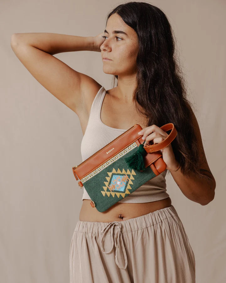 Palma Tribal Tapestry Purse (Olive/Brown)