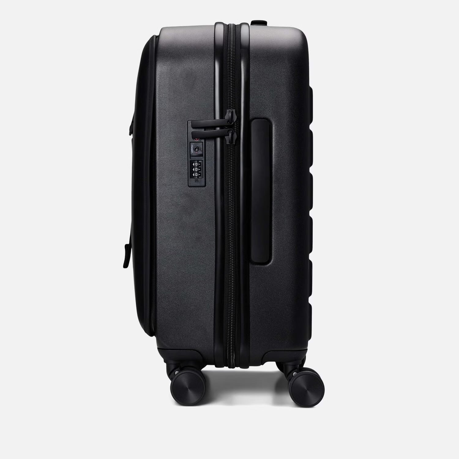 Texel Cabin Trolley is finished with a front webbing compression strap and large front pocket in waterproof PU fabric, perfect for passports, and up to 15” laptops and tablets.