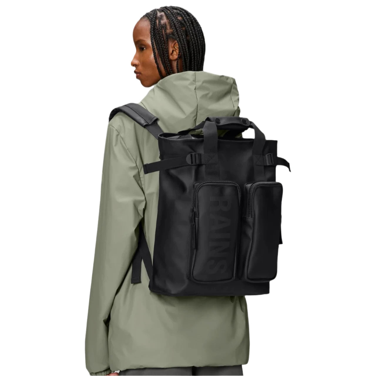 Texel Tote Backpack is cut from Rains’ signature waterproof PU fabric, engineered for carrying strength, durability, and a smooth feel.