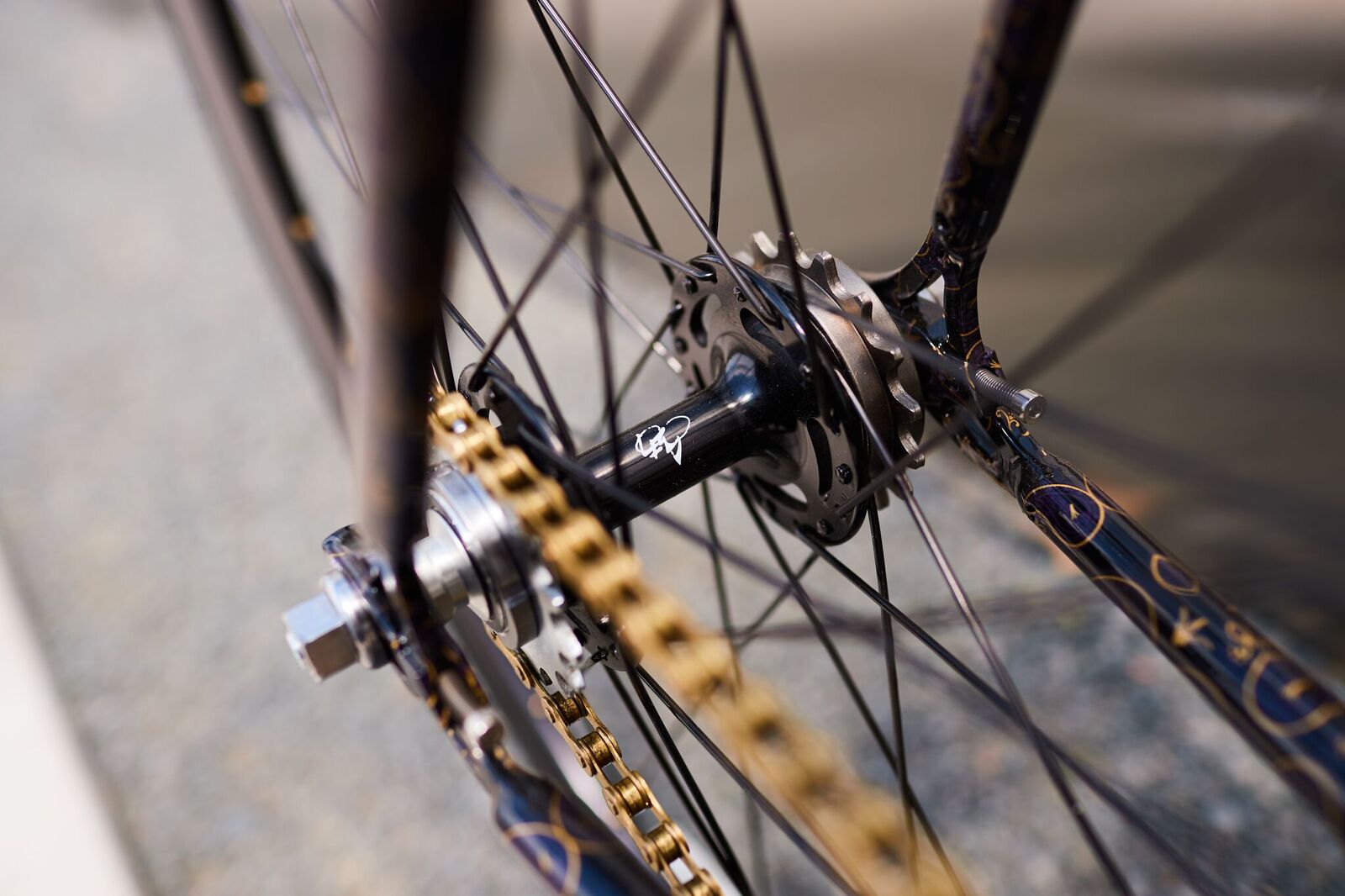 Set on either a jet black or frost white frame, both bikes feature golden stems, seat posts, cranks, chains, and spoke nipples on a wide, double black wheel and rim set. Custom STUDIIYO23 branding is found on the cross bar, the downtube, as well as both wheel cogs. The front head tube features a custom engraved plaque of MiMi (美美), our heroine bird of prey, always looking ahead and standing guard over our riders. As an added bonus, each bicycle offers both fixed and singlespeed mode to suit the Rider’s preference. The look is finished off with our mantra “Passion Reigns Supreme” delicately engraved on the top of the stem to always remind our Riders to never give up on their dreams and to follow their passions to the end...or perhaps there is no end, a metaphor to the endless paths Riders are sure to travel atop The Lotus.